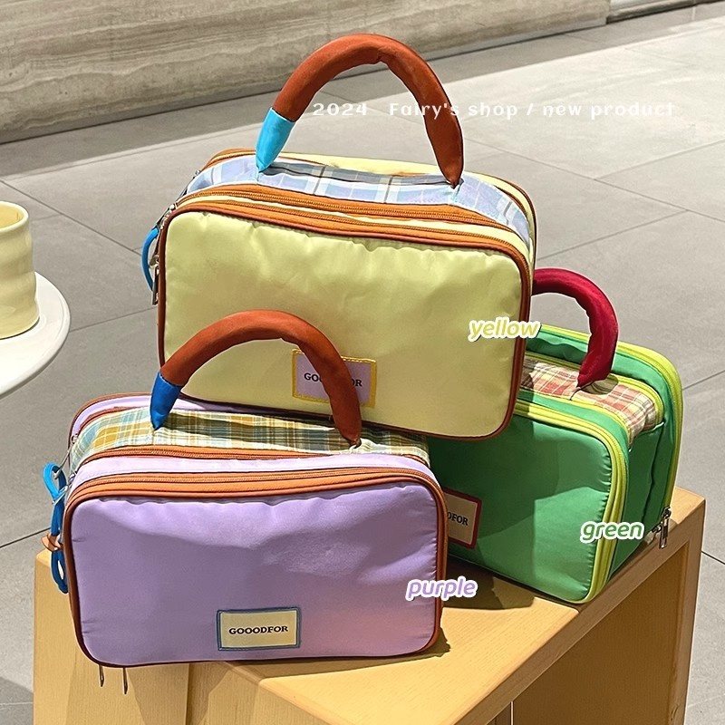 Nuova borsa cosmetica in Nylon alla moda di fascia alta Plaid con Splicing Multi-partizione da viaggio differenziata per articoli da toeletta