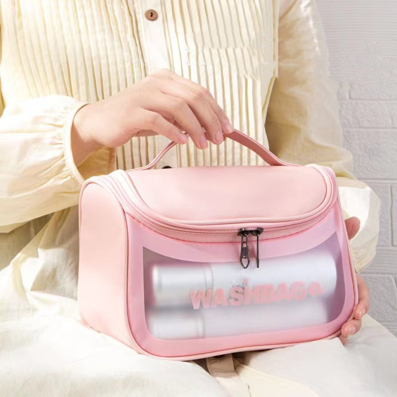 กระเป๋าเครื่องสำอางพกพา2025สำหรับผู้หญิงกระเป๋าเครื่องสำอางกันน้ำหนัง PU มีที่จับ